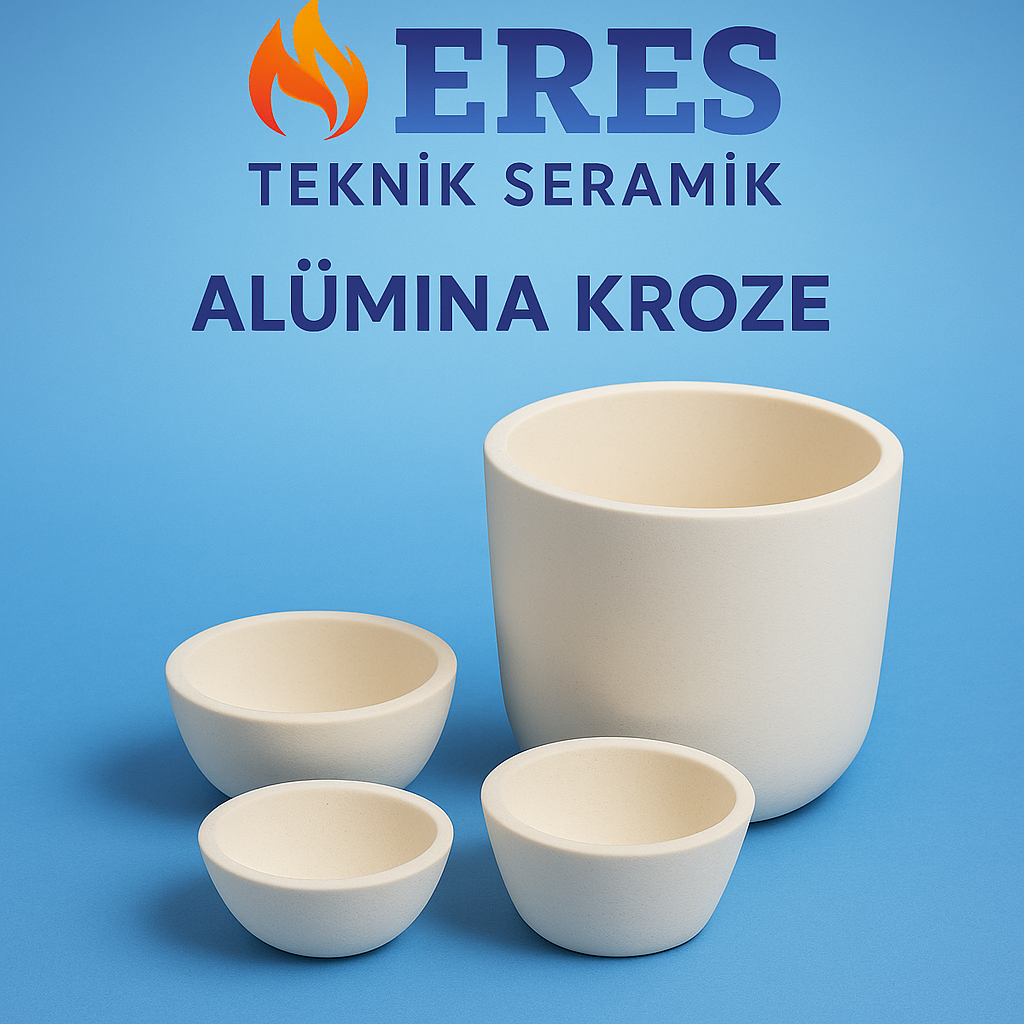 Alümina kroze, yüksek Al₂O₃ içeriği sayesinde ısıya, termal şoka ve kimyasal etkilere dayanıklı laboratuvar kabıdır. Kül tayini, ergitme, ısıl işlem ve analiz fırınlarında formunu bozmadan kullanılabilir. ERES Teknik Seramik, farklı hacim ve ölçülerde alümina kroze üreterek yüksek sıcaklık proseslerine güvenilir çözüm sunar.