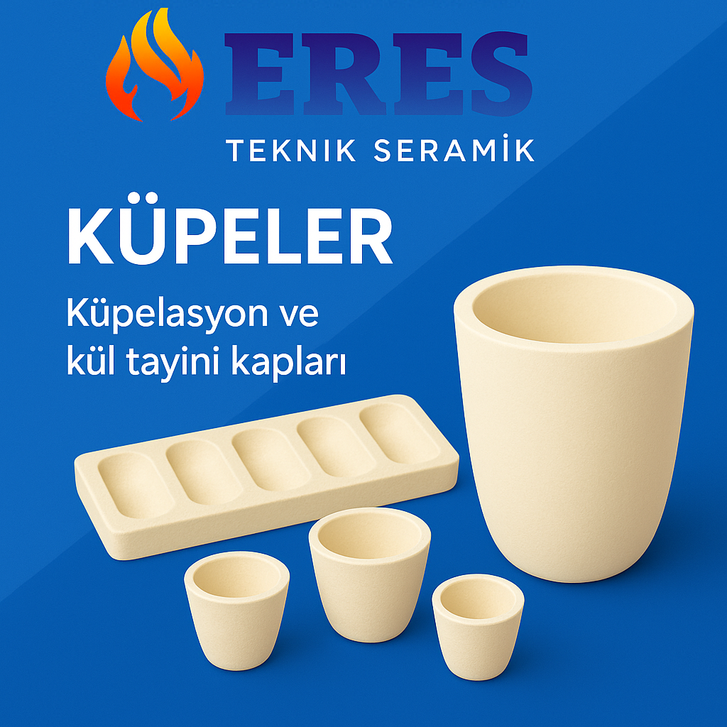 Küpeler (küpeller), değerli metal analizleri, kül tayini ve küpelasyon işlemlerinde numunenin kontrollü şekilde fırında işlenmesi için kullanılan, yüksek sıcaklığa ve termal şoka dayanıklı seramik kaplardır. ERES Teknik Seramik; tekli/çoklu magnezit ve tekli/çoklu alümina küpeler ile farklı fırın ölçülerine ve analiz yöntemlerine uygun özel üretim küpeler sunarak hem laboratuvar hem sanayi tipi uygulamalara çözüm sağlar.