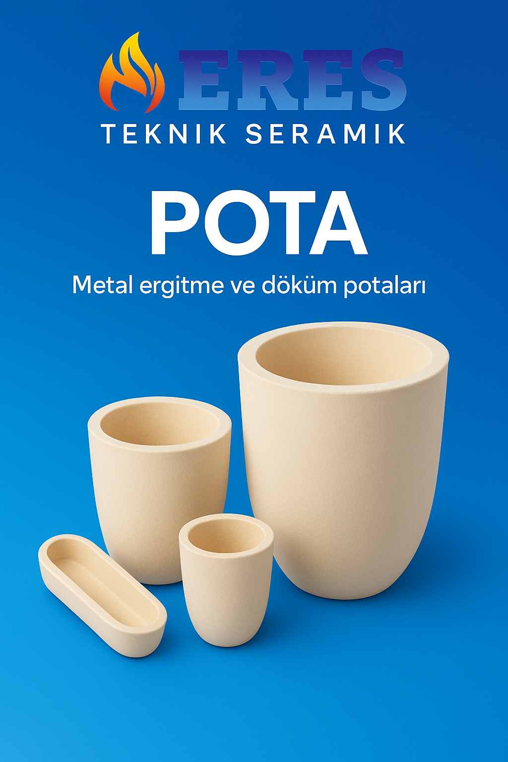 Pota, yüksek sıcaklıklarda metal, alaşım veya numune ergitmek için kullanılan kalın cidarlı seramik kaptır. Isıl şoka ve kimyasal etkilere dayanacak şekilde üretilir; döküm, ergitme ve laboratuvar fırınlarında formunu koruyarak güvenilir bir çalışma ortamı sağlar. ERES Teknik Seramik, prosese göre farklı hacim ve malzemede pota üretimi yapabilir.